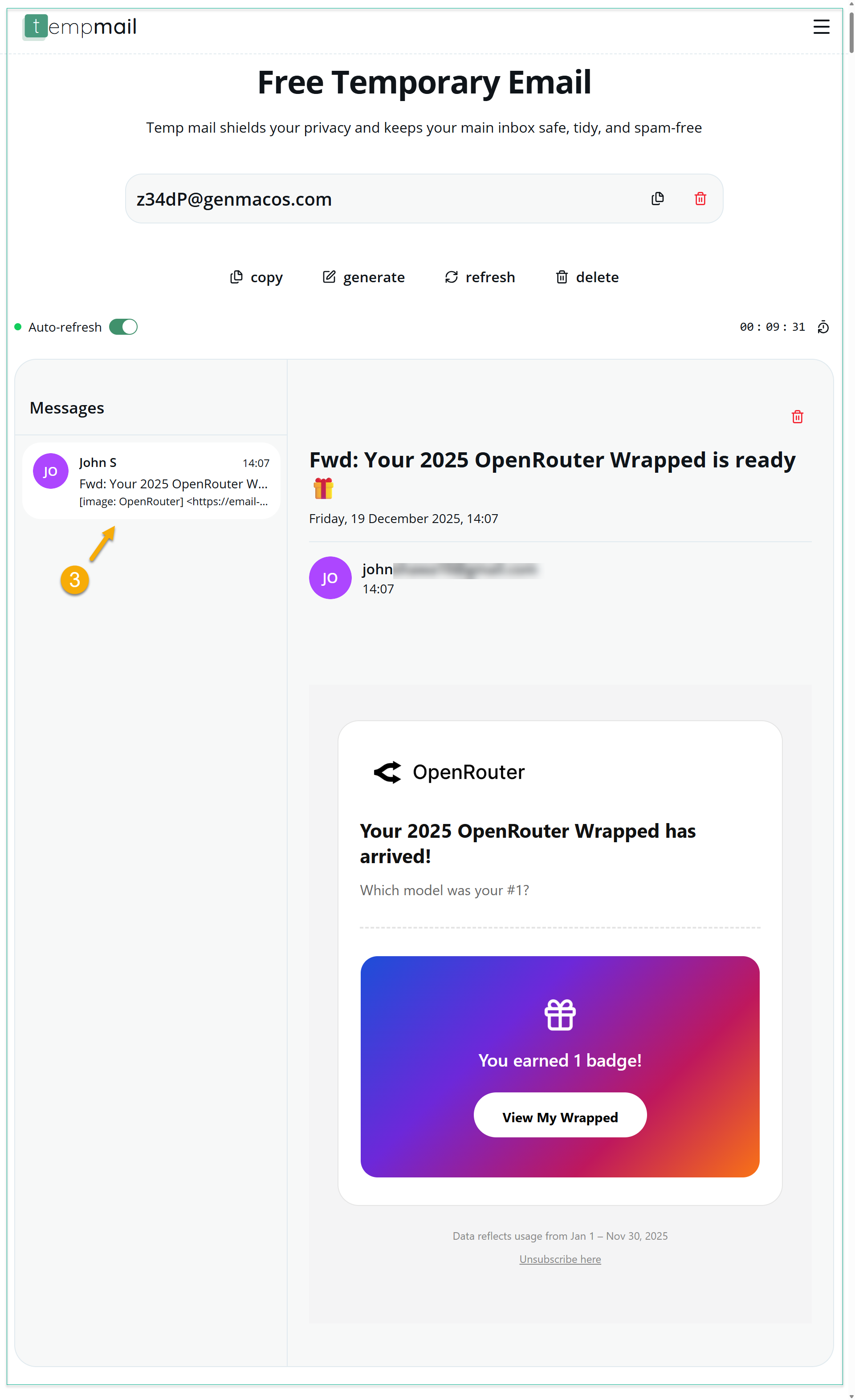 Your temporary inbox updates automatically every few seconds. You'll see new emails appear instantly. Click on any email to read it.